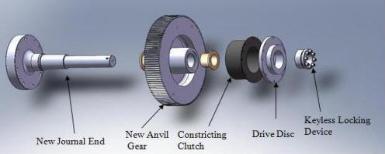 constricting clutch to clamp the anvil drum gear to the journal end. The
